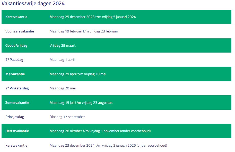 schoolvakanties 2024 den haag